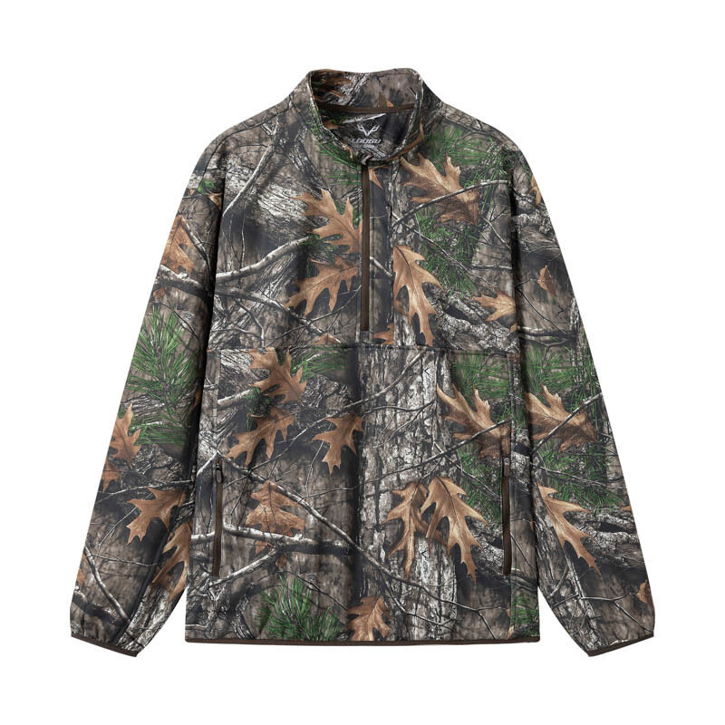 Designed for hunters and outdoor enthusiasts, this woodland camo fleece-lined quarter zip pullover delivers a balance of warmth, comfort and mobility. The smooth polyester shell sheds light moisture and brush, while the brushed inner layer traps body heat without feeling bulky. The realistic forest print blends into wooded terrain, making it a dependable choice for stalking, waiting in blinds, or general field work.