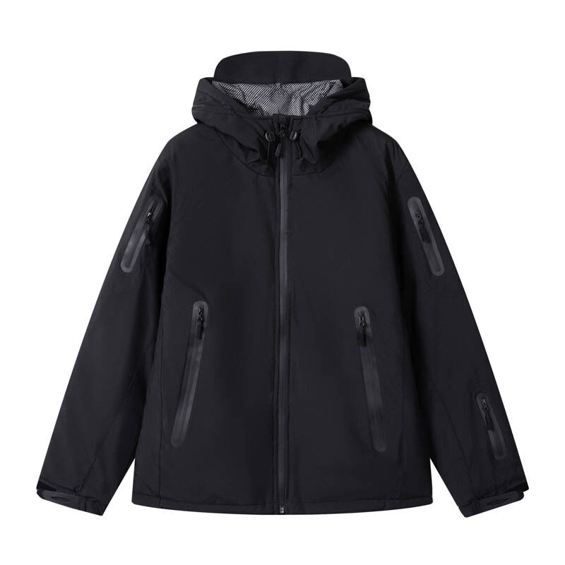 | Pockets | Waterproof zip pockets on chest, sleeves & sides; inner zip pocket for power bank |