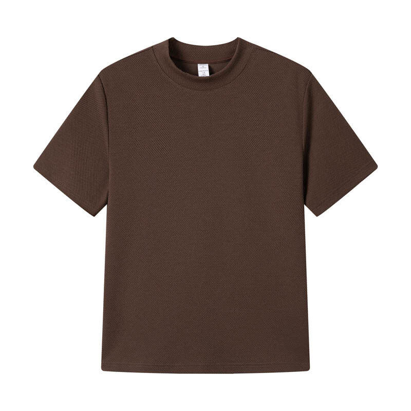 Premium textured knit jersey with a soft, comfortable handfeel. Clean crew neck and boxy silhouette for a modern minimalist look. Versatile piece for daily wear, office casual, or as a layering base. Solid coffee brown color ideal for branding, printing, or uniforms.